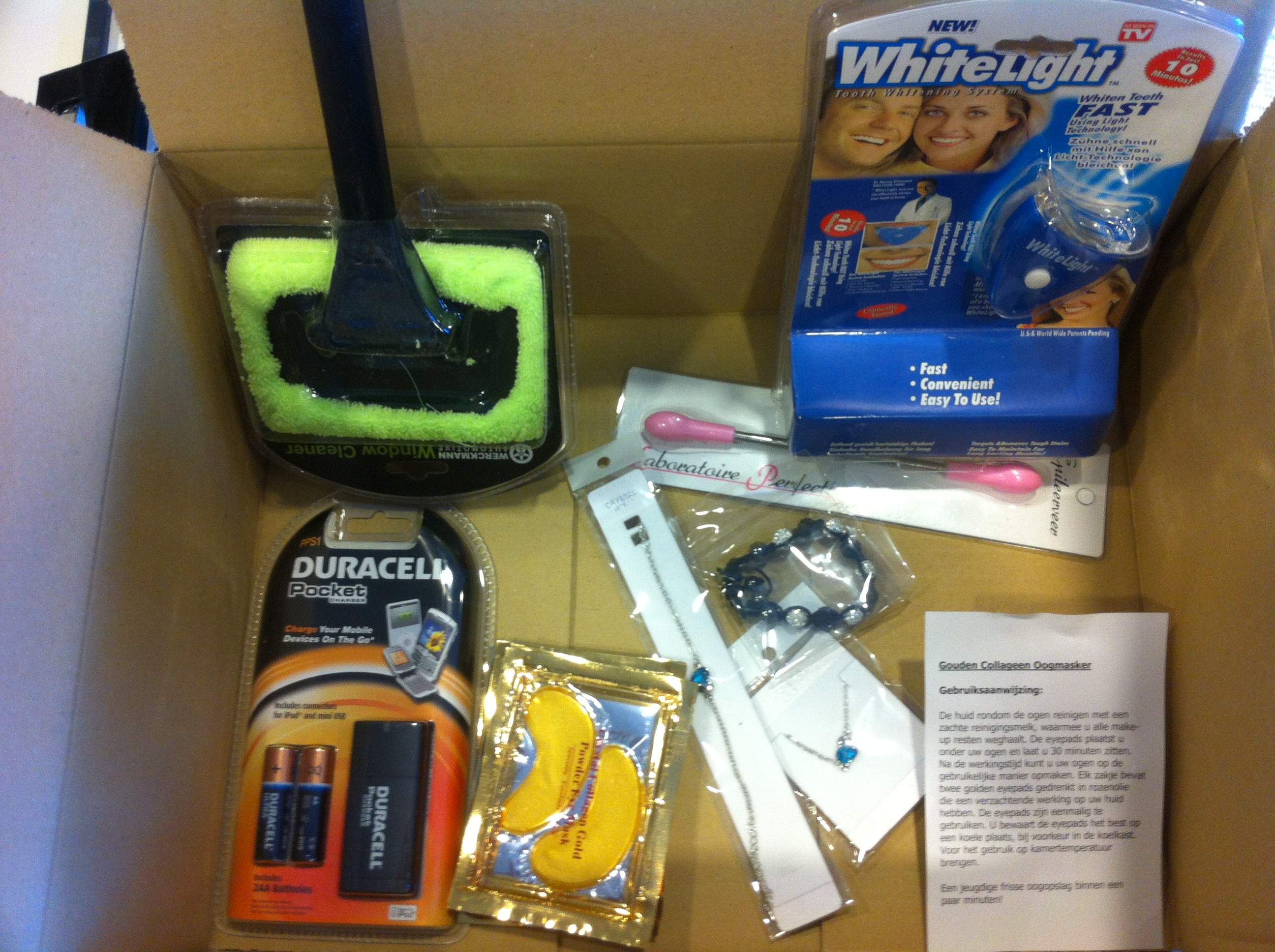 Goedemiddag, Op 1 februari gaf ik jullie de opdracht om het onderstaande te leveren: 1 x een Valentijnspakket voor haar voor € 25,00 met een minimale waarde van € 100,00 Grote oplichting is mijn antwoord, er zit nog niet voor € 10,00 aan prdukten in. Te slecht voor woorden !! 1 x een doekje op een stokje ( window cleaner ? )1 x whitelight ( om je tanden te bleken ) 1 x een batterij oplader, 1 paar plastic oorbellen en 2 armbandjes en 5 pakjes met een oogmasker ( volgens mij gewoon monstertjes die ik gratis krijg bij de drogist ! ) Ik voel me echt opgelicht ! Jullie melde dat er soms wel een tv, tablet of computers inzaten, dat leek mij al sterk, maar dit slaat echt alles. Hoe gaan jullie dit goedmaken ? Heb ik soms een verkeerde doos gehad ? Krijg ik nog een doos met de echte spullen, of kan ik deze retour sturen ( kost ook weer geld !!! ) en betalen jullie mij de gemaakte kosten terug ( met de te maken verzendkosten. Sorry hoor, maar als ik dit voor Valentijn geef, is mijn relatie over denk ik!! Heb nu dus ook niets om te geven aan mijn “Valentijn “! Ik ontvang graag spoedig een oplossing en hoop een tevreden antwoord!