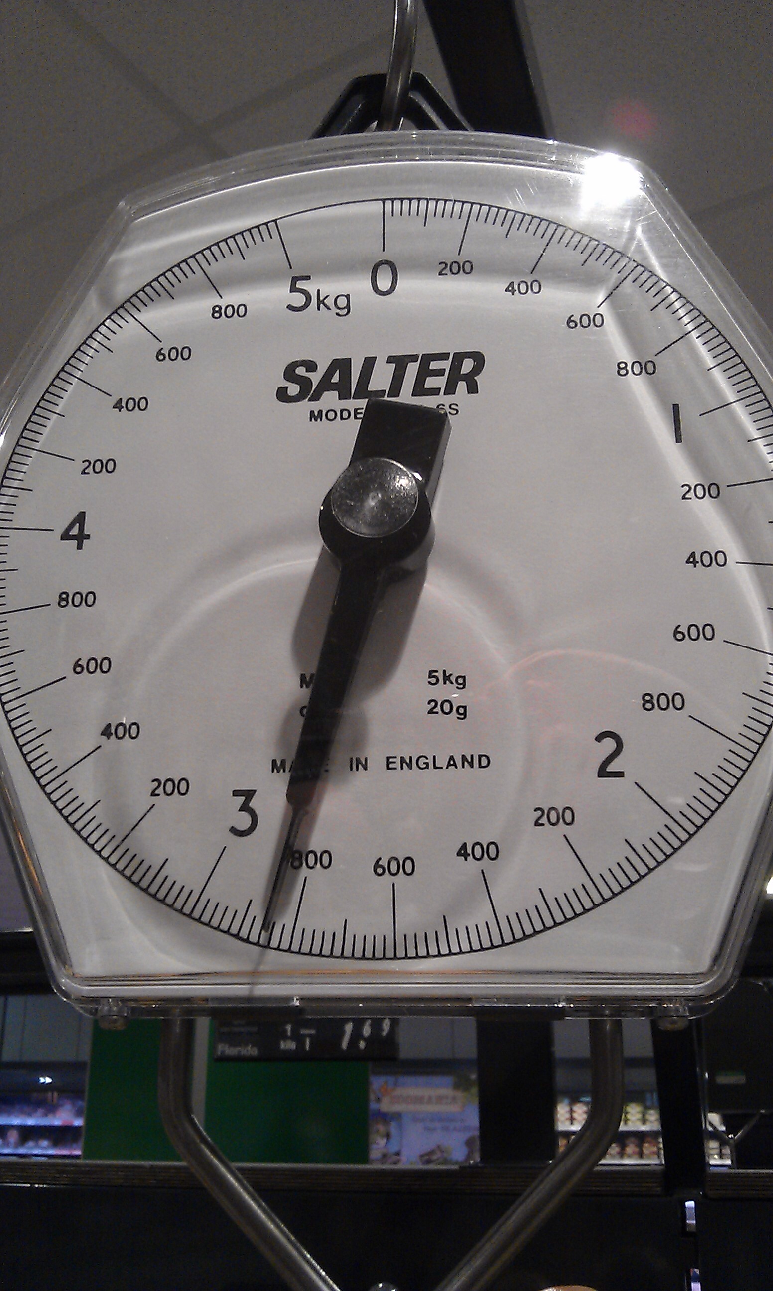 Wederom zie ik een net sinaasappels in een van de winkels van Deen met vermelding op etiket: 3000 gram, wegen levert slechts 2.825 gram op. Zie bijgaande foto’s.