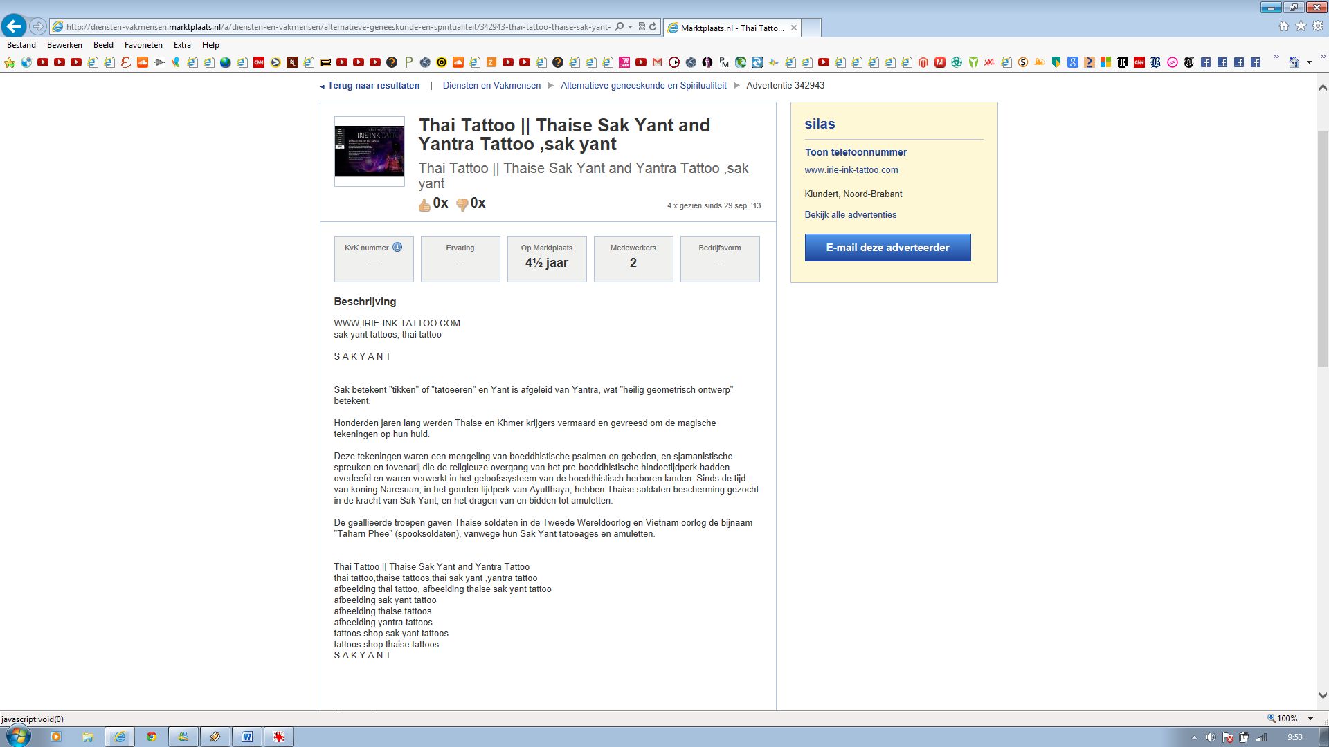 Een ondernemer heeft een groot gedeelte van mijn website www.thaitattoo.nl gekopieerd en adverteert hiermee op Marktplaats. Ondanks diverse mails en het faxen van een formulier “Melding van inbreuk” doet Marktplaats niets en loopt mijn bedrijf aanzienlijke schade op.