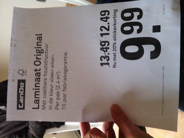 Er stond in bouwmarkt karwei Vleuten een prijs bij laminaat waar duidelijk stond PER PAK. Aangekomen bij de kassa blijkt dit een hele andere prijs te zijn. De medewerker van de kasse is met mij meegelopen en gaf mij gelijk maar zij kon niks doen. Ik moest naar de servicemanager, deze mevrouw zei dat ze niks kon doen en dat dit een prijs is per m2 en dus niet per pak zoals aangegeven op prijskaart en kan verder niets voor me doen. Al vertelde ze wel dat het niet helemaal klopte. Ik werd onbeschoft geholpen en er werd totaal niet meegedacht.