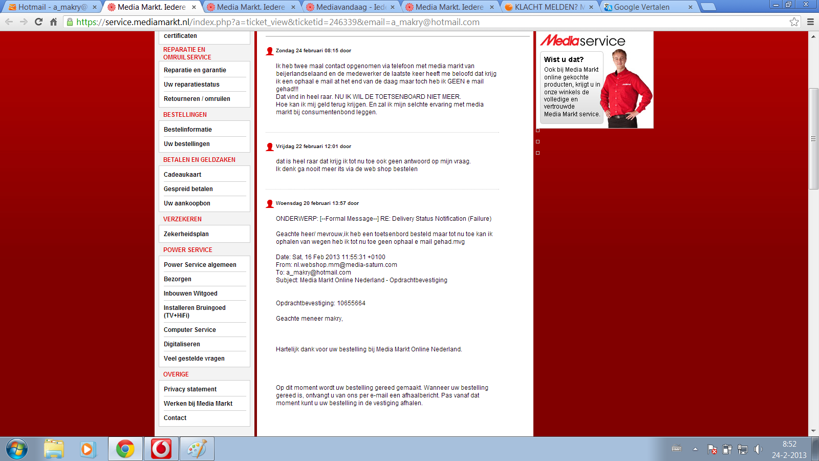 13 years ago - We have posted reminder on Twitter to remind MediaMarkt to pickup complaint