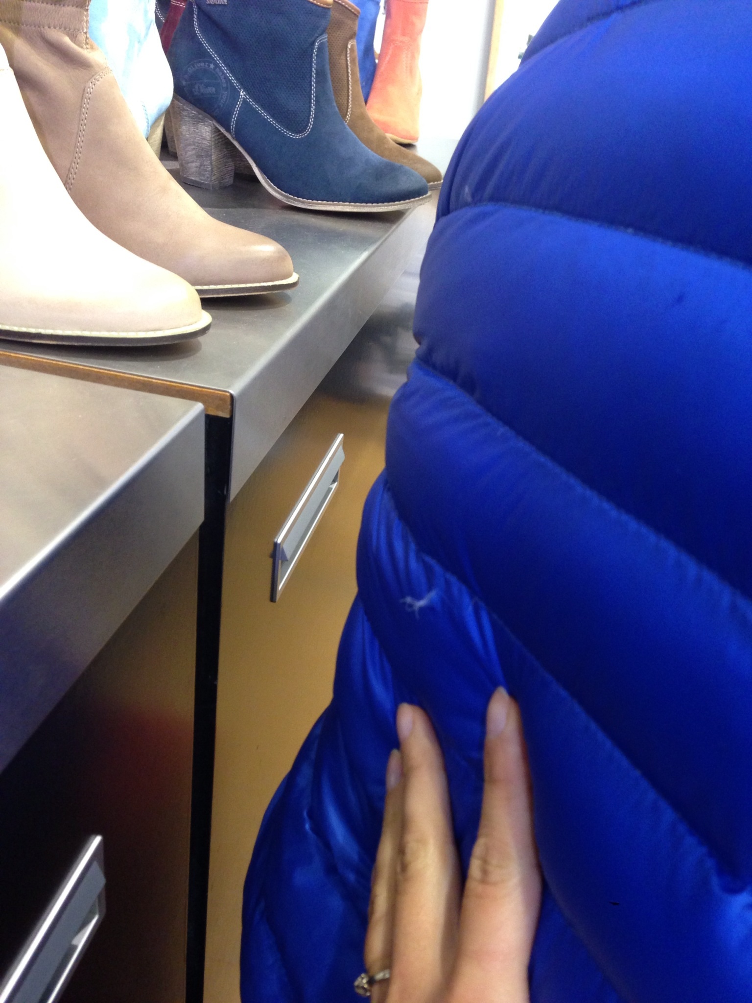 Ik had laarsjes gepast ,tijdens hetpassen kwam ik vast te zitten aan een haakje