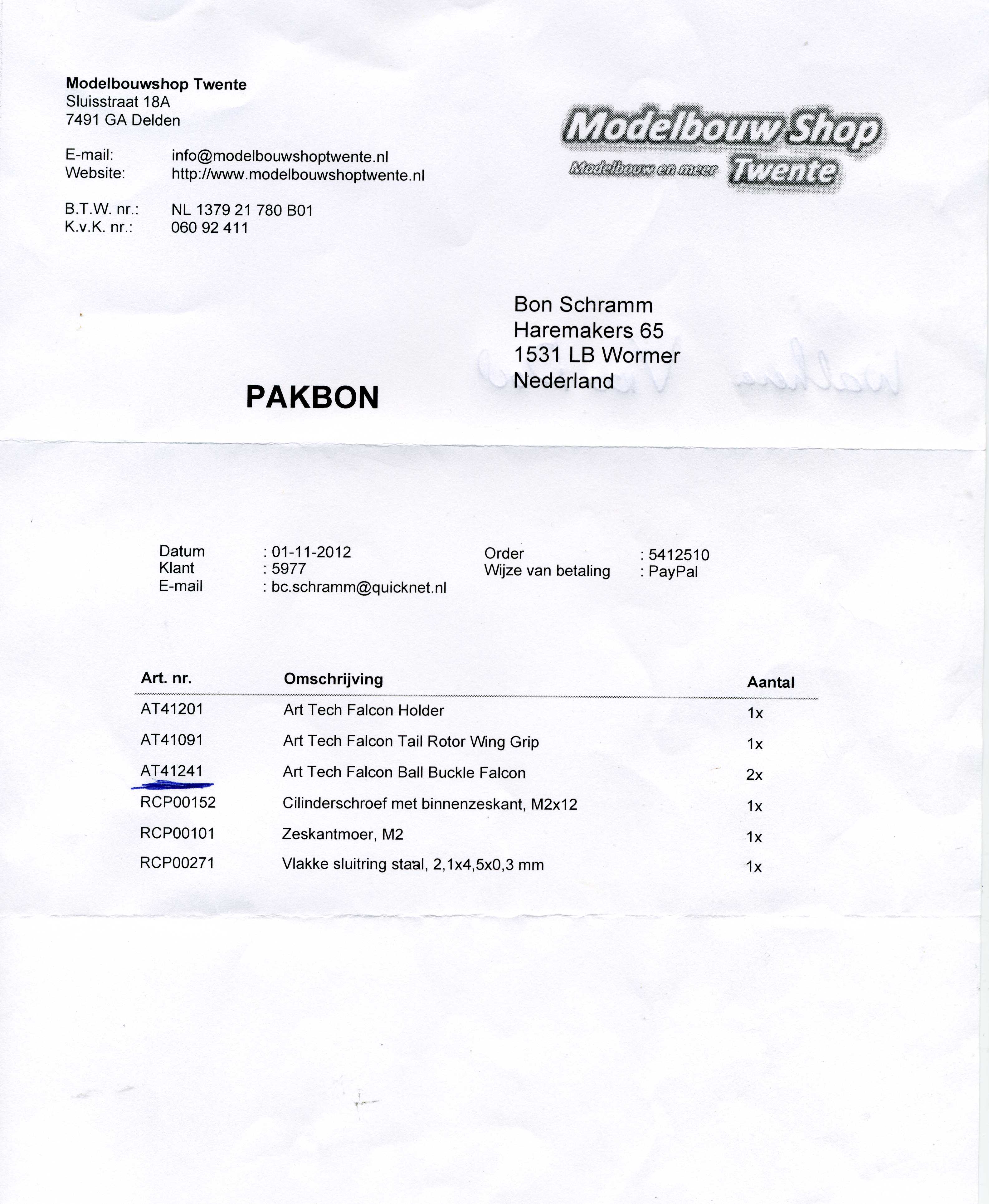 Op 1 november een bestelling gedaan t.b.v.onderdelen rc heli.