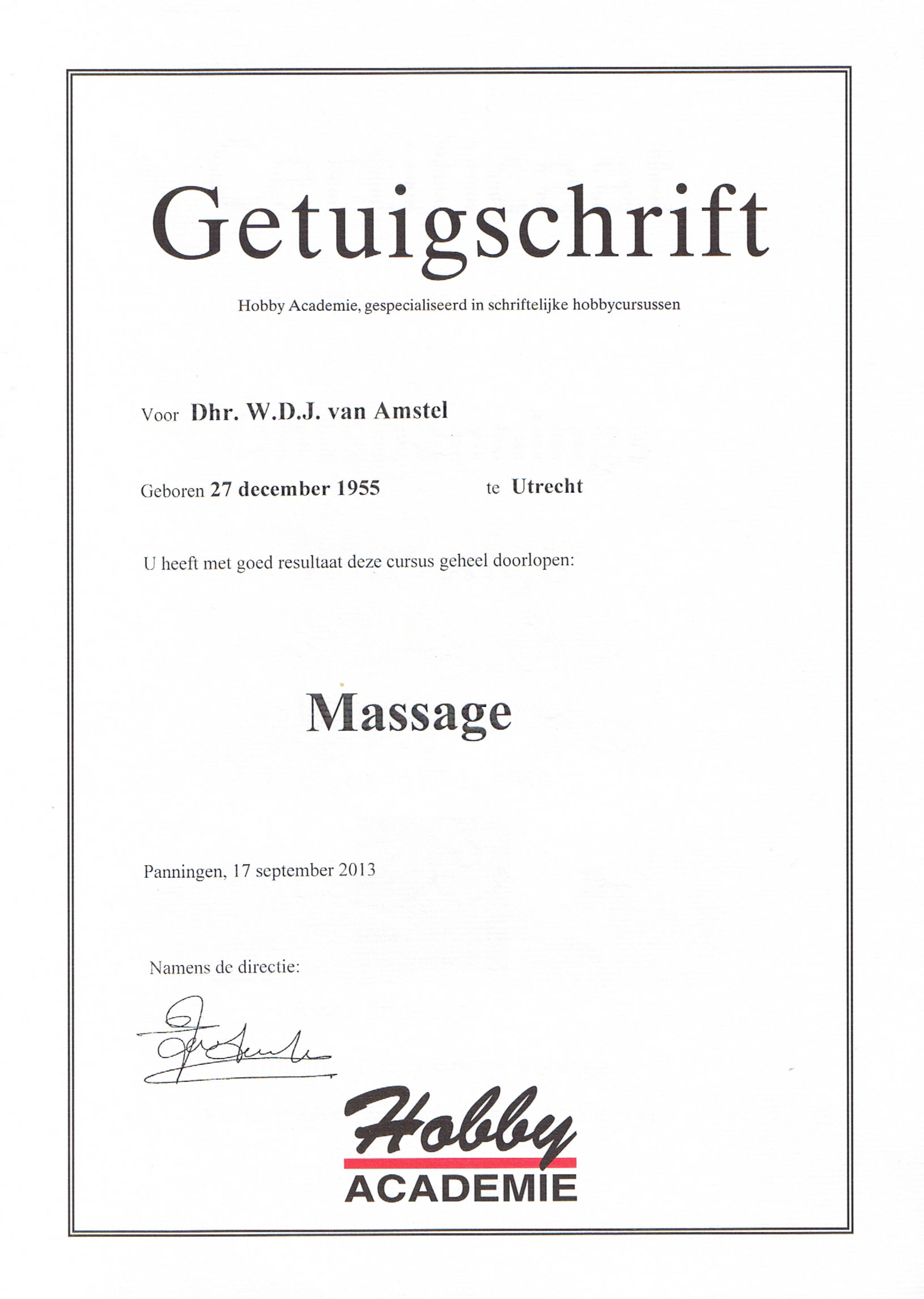 Onlangs heb ik mij bij de Nationale Handels Academie “NHA” ingeschreven voor de Cursus Massage. De inschrijving is door de NHA bevestigd en mij de lessen toegestuurd.