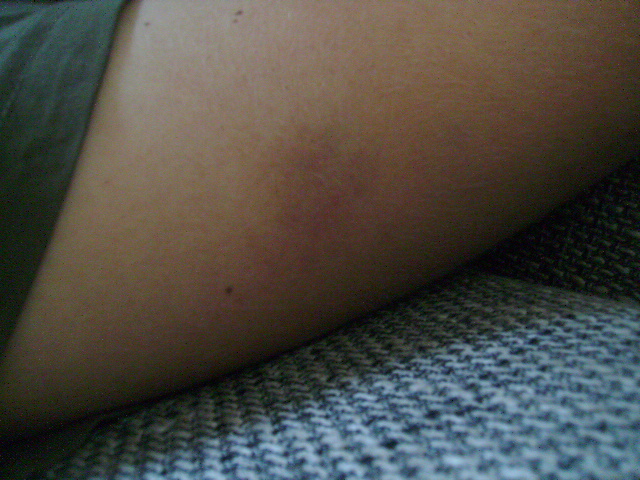 hij heeft oa, een blauw oog, een blauwe hals, en meerdere blauwe plekken, een zere pols