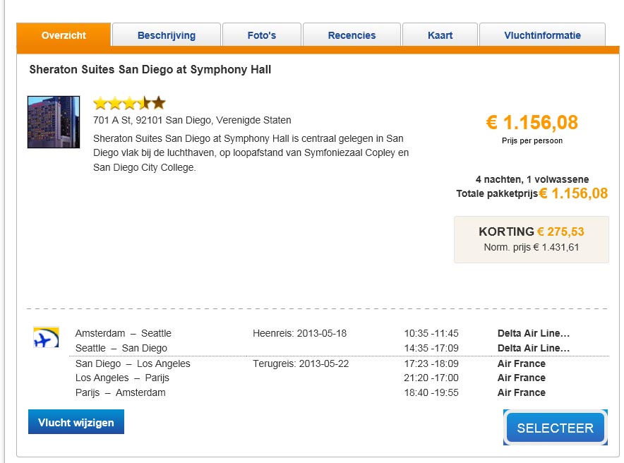 Ik heb een vlucht geboekt in combinatie met een aantal hotelovernachtingen.