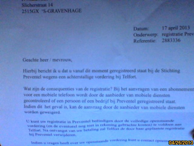 Ik ben erg poos van Telfort want ik heb geen internetabonnement bij hun. Ik heb Wi-Fi gebruiken daroom waroom moet ik dez bedraag betalen.Ik heb nu gewoon Lycamobile ik kan waar Wi-Fi aanwzig zijn kan ik internet gebruiken. En hun hebben ook mijn abonnement geblokkeerd bijna 5 manden kan ik niet meer gebruiken.Daroom ik vind echt niet goed van Telfort. Ik ben echt niet mee eens en ik wil ook niet naar mijn Advocaat en naar media te gaan. Dus ik hoop dat jullie snel oplossing kan doen.