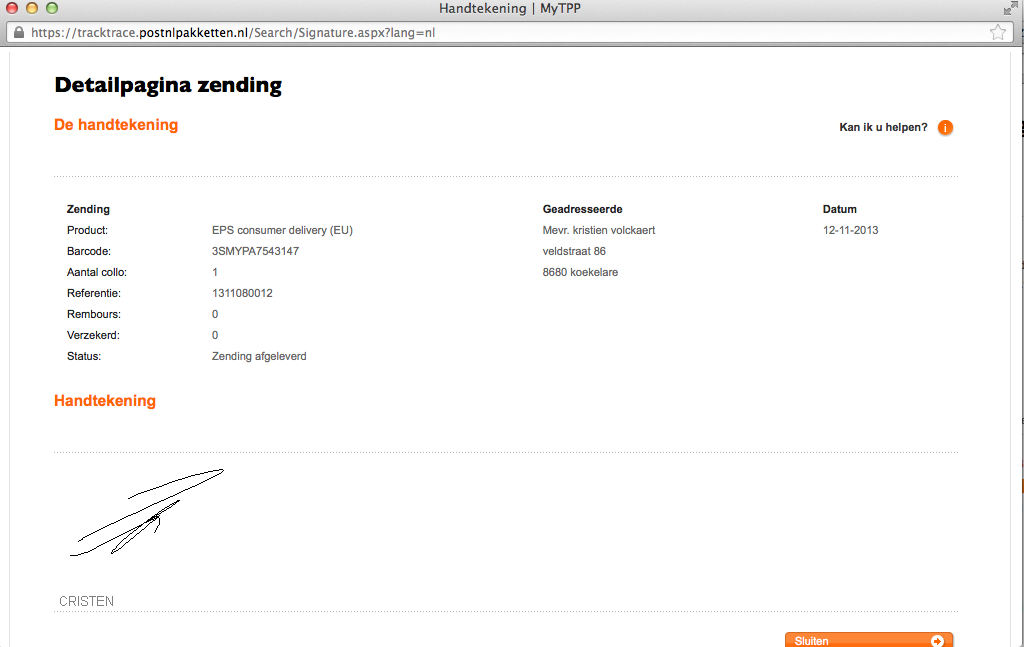 user-212004 on 13 November 2013 about TNT post in category Koeriersbedrijven en post