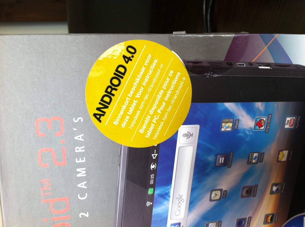 deze keus is o.a. gevallen op deze tablet omdat deze binnenkort een upgrade van android 2.3 naar 4.0 kreeg