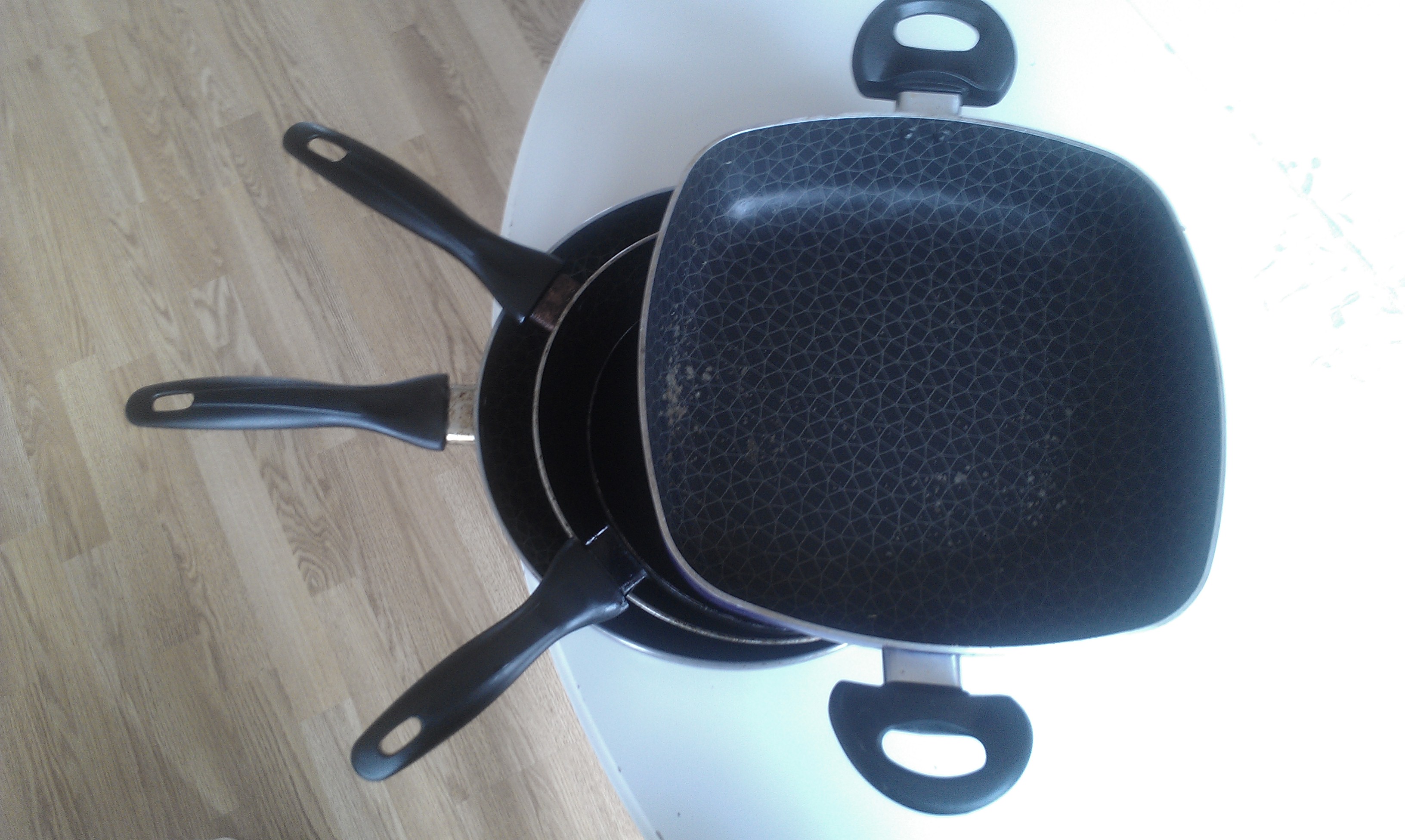11 maart 2011 deze pannenset gekocht voor een bedrag van € 82,85. Al snel lieten de handvatten los en koekte alles aan indien ik geen olie gebruikte. Dit heb ik even door de vingers gezien maar nu de tefal in de pan ook los laat en dit zelfs in mijn eten komt, vind ik het onacceptabel. Op mail contact reageert dit bedrijf niet.